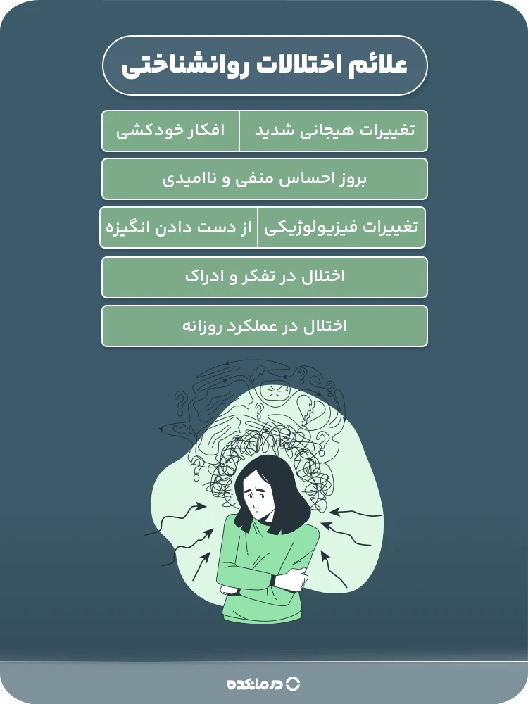 - افکار آسیب به خود یا دیگران از جمله خودکشی یا رفتارهای خودآزارانه